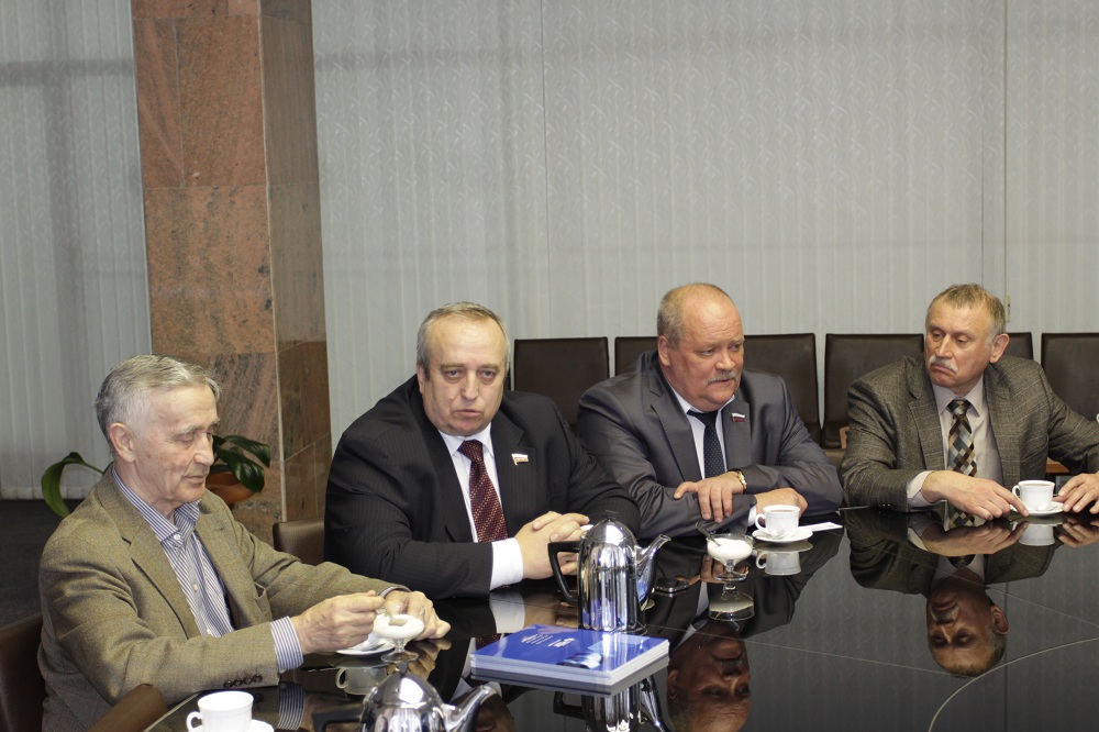 В Президиуме СО РАН прошло заседание выездного круглого стола комитета Государственной Думы по обороне на тему «Состояние работ в интересах оборонно-промышленного комплекса, перспективы и проблемы внедрения новейших научных достижений в производство. Вопросы их законодательного обеспечения». В составе делегации было десять членов комитета во главе с его председателем — депутатом Государственной Думы, адмиралом Владимиром Петровичем Комоедовым. В ИЯФе для гостей была проведена за круглым столом презентация института, а затем они побывали на установке ВЭПП-2000.