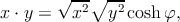 Времениподобный вектор x длины t (x2 = t2), направленный под углом φ к оси времени, имеет компоненты (2.5) xμ = t(cosh φ, sinh φ) (рис. 11). То есть его проекция на направление eμ = (1, 0) есть t cosh ϑ. Она всегда ≥ t; равенство достигается при φ = 0.