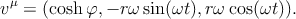 Его конец пробегает окружность радиуса sinh ϑ = ωr, то есть длины 2πωr, за период собственного времени T = 2π∕ω. Поэтому длина вектора ускорения (пространственноподобная) равна ω2r, и