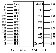 | Отрицательная логика | -A0 | -B0 | -F0 | -F3 | Cn | Cn+4 | -P | -G |